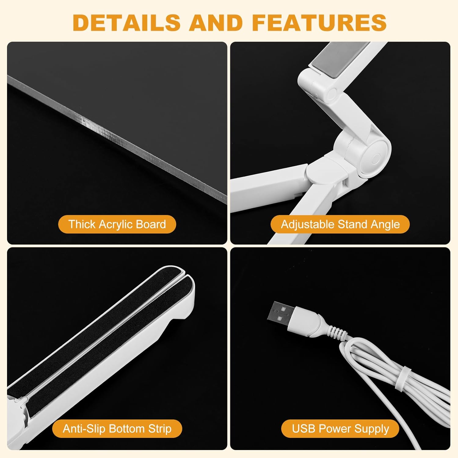 - Package Contents: 1 Lighted Note Board, 1 Stand, 7 Colored Pens, 2 Cleaning Cloths, 1 Instruction Manual