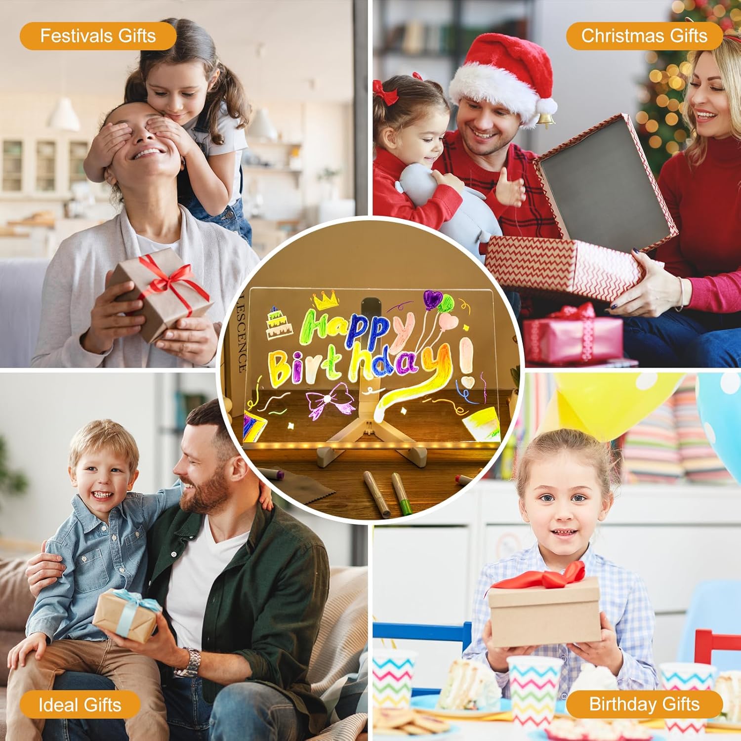 Acrylic lighted note board with colorful LEDs. Great for kids' art, home notes, store displays. Easy - clean and reusable!