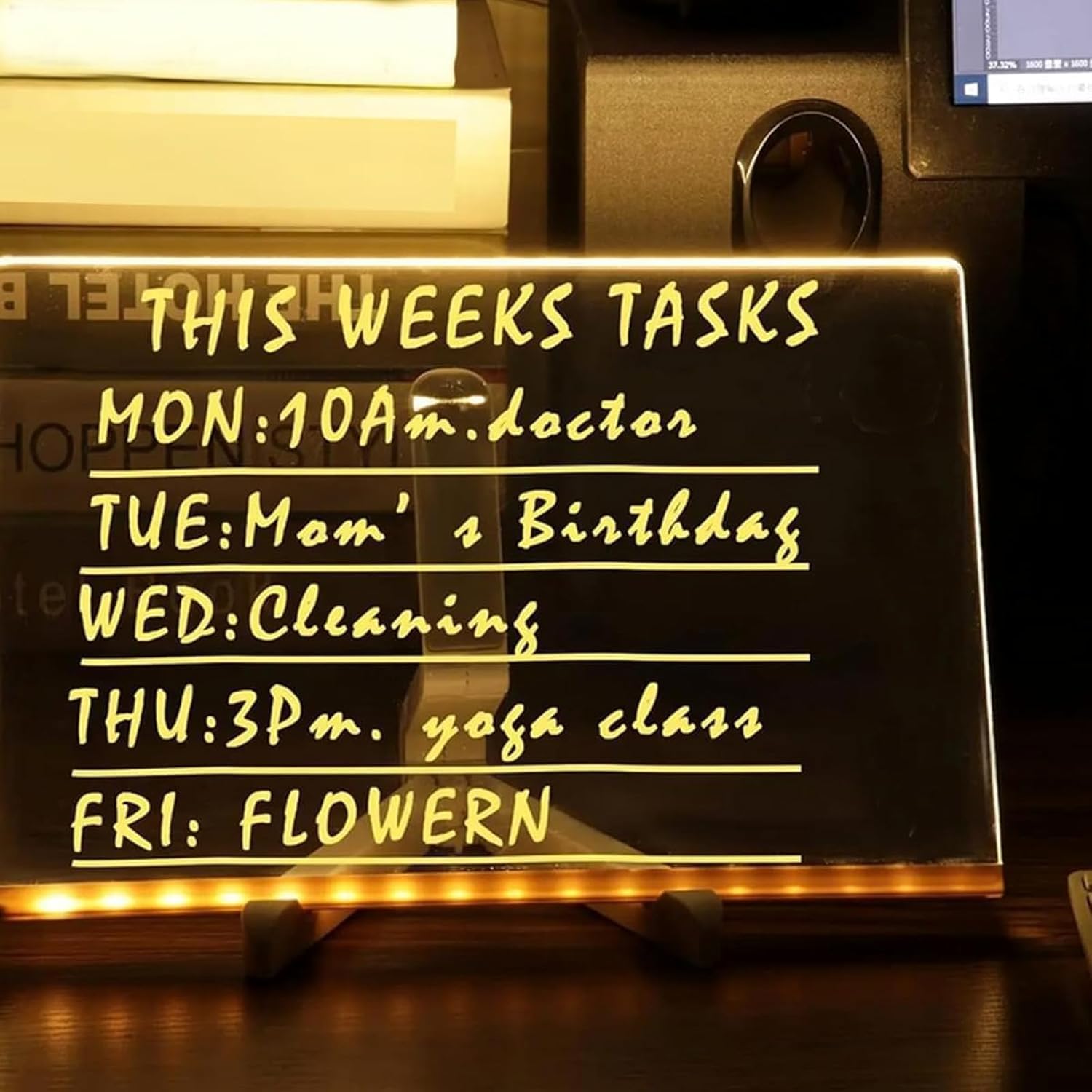 🔥🔥Illuminated Acrylic Dry Erase Board with Stand and 7 Pens ✏️🎨📜